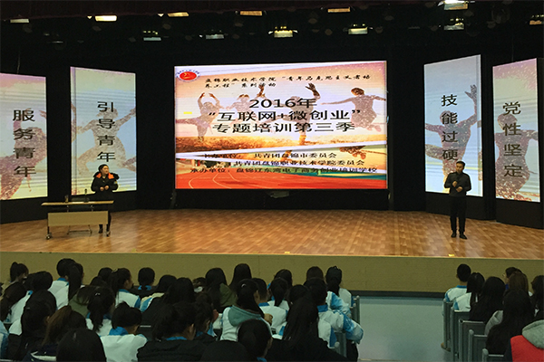 为进一步贯彻落实共青团中央关于《“青年马克思主义者培养工程”实施纲要》的文件精神,切实加强我院大学生骨干队伍的凝聚力和战斗力,培养具有较高素质的大学生队伍,推进我院团的基层组织建设。11月15日下午14:00,由共青团盘锦市委员会主办,学院团委承办的2016年“互联网+微创业”专题培训讲座在学院文化中心演播大厅拉开帷幕。本次讲座邀请盘锦辽东湾电子商务创业培训学校林笑羽讲师担任主讲。讲座由学院团委副书记蔡志远主持,近800名学生聆听了本次讲座。