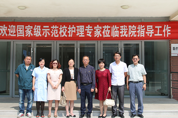 到校后,两位专家在学院李辉院长以及医护分院李冬院长、姚文山副院长等人的陪同下,参观了医疗护理分院的实训室。参观过程中,两位专家就护理行业现状讲了几点看法,一方面职业教育的目标是要培养实用型可持续发展的技能人才,另一方面合理实施项目化教学法能有效满足职业教育的目标和市场对可持续发展的人才需求。