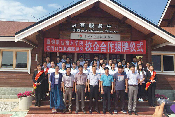 在中国共产党成立95周年这个特殊的日子里,在辽河口红海滩旅游区,伟德bv国际体育与辽河口红海滩旅游区隆重举行校企合作揭牌仪式。