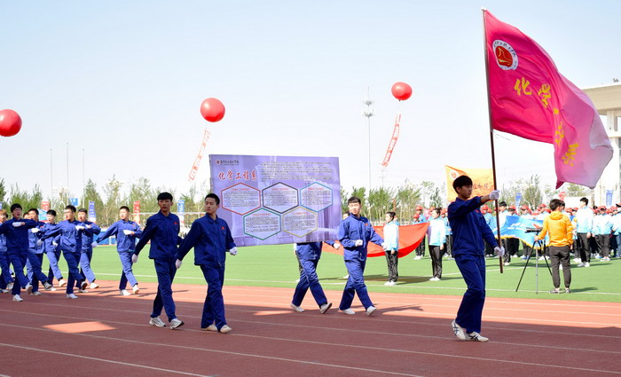 伴随着激昂的《运动员进行曲》,学院国旗队、校旗队、裁判员方队、分院系学生与教工方队以及教工检阅方队共17支队伍在开幕式上接受检阅。检阅队伍穿着代表各自专业与职业特色的服装意气风发地出场,并别出心裁地设计了队伍口号,表达了盘职院人蓬勃向上的生命张力。