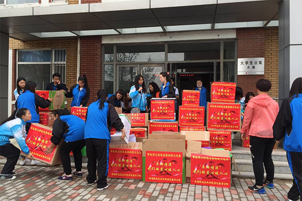 5月24日上午9点,师范教育分院党总支师生党员为切实贯彻“两学一做”学习教育精神,号召师范教育分院全体师生向四川省色达县捐赠爱心衣物,在学生公寓A座将提前收集好的衣物集中装箱邮递给远在四川省色达县的贫困地区孩子们。