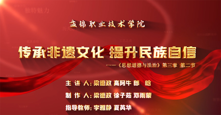 李雅静、夏英华老师指导、2022级学生梁德政、高阿牛、郞晗完成的参赛作品《传承非遗文化 提升民族自信》。