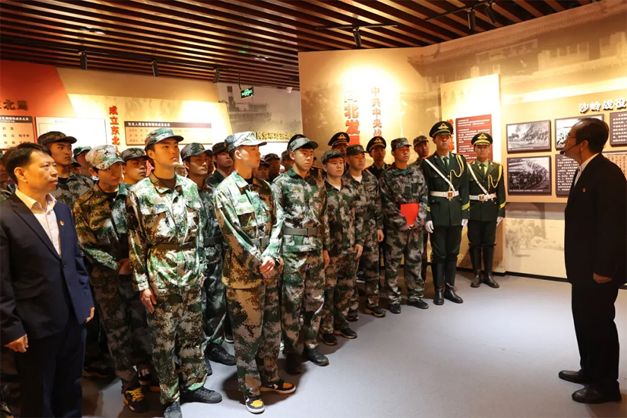 活动第二站来到辽宁讲武堂国防教育基地。在讲解员的引导下,全体预征班学员深刻认识了我国国防建设的辉煌历程与现状,了解了众多前沿的军事装备与技术。在武器装备展示区,学员们近距离观察了各类武器装备模型,深入了解了国防科技的飞速发展及其在实际应用中的重要作用。参观中,与会的各位领导不时与学员们进行交流,鼓励学员们要追溯红色征程,感悟革命精神,增强国防意识,努力学习,加强训练,争取早日投身到强军兴军的伟大事业中。