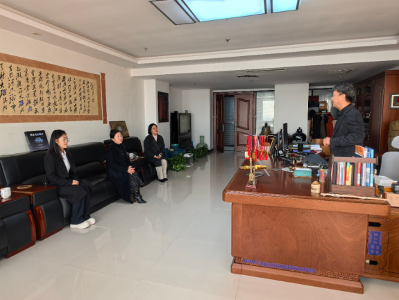 宋锦校长介绍了学校的办学特色、专业设置及人才培养成效。她表示,伟德官网始终坚持服务地方经济发展,注重学生实践能力与创新精神的培养。针对企业对销售、文创设计等岗位的需求,宋锦校长提出,可以通过“工作坊”模式开展项目化教学,将企业真实项目引入课堂,提升学生的岗位适应能力;同时,鼓励以“创新创业”为载体,支持学生围绕企业需求开展创意设计与市场实践,真正实现“学中做、做中学”。她还表示,希望双方以此次走访为契机,进一步深化合作,探索“校企共育、产教共融”的人才培养新路径。