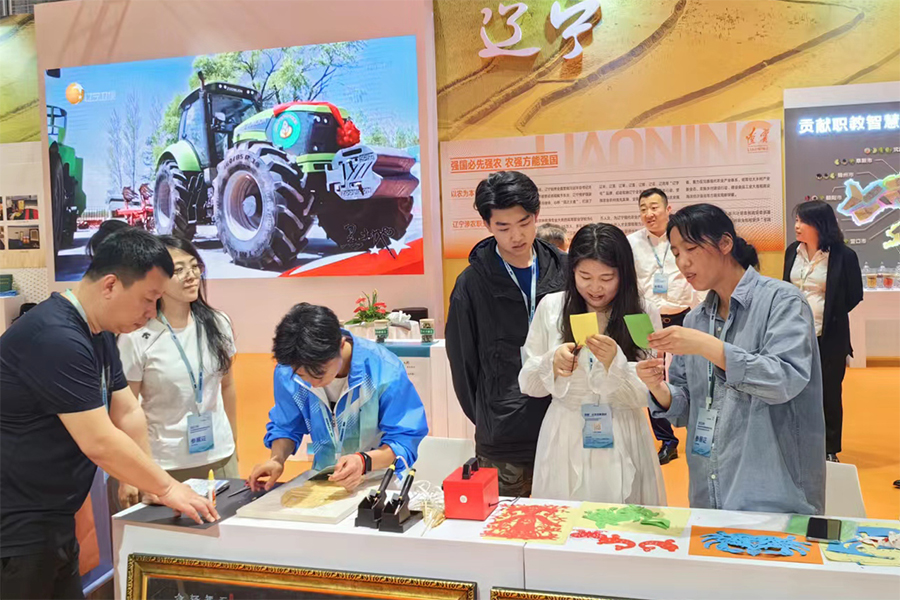 2023年5月14日,伟德官网学前教育专业差异化培养教学成果“非遗芦苇画”“非遗剪纸”入选在山东潍坊举行的全国职业教育展。辽宁省教育厅厅长王庆东莅临现场指导。