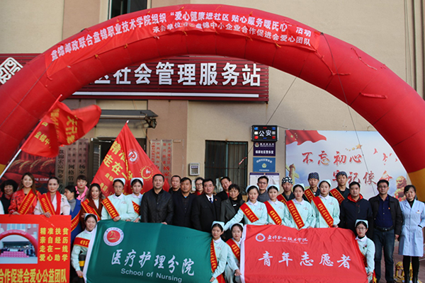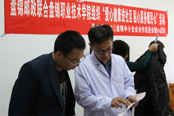 为提高社区居民的健康知识水平,伟德bv国际体育医疗护理分院充分利用护理专业特色优势,联合盘锦邮政“爱心医疗”项目组、何氏眼科医院、盘锦中小企业合作促进会等多个单位,于11月27日下午1:30在盘锦市振兴街道杨家社区开展了义诊活动。伟德bv国际体育学生工作处处长邓红伟,医疗护理分院党支部书记王艳华,党支部副书记陈平海,副院长姚文山,辅导员高德朋、王聪,专任教师董莲诗、范华、金莉及医护分院14名青年志愿者参加了本次活动。