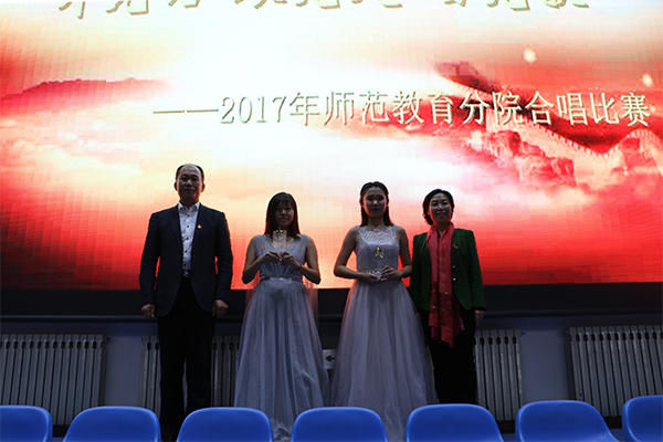 师范教育分院于12月22日下午一点半在体育馆三楼举行以“听党话 跟党走 唱党歌”为主题的合唱比赛。学院党委副书记李兵和师范教育分院领导老师全程观看了比赛。担任此次比赛的评委老师有李凤坤、刘玉芝、臧晓娟、任淑华、石龙海、张丽妍、姜漫漫、许晋、李根、李雪韵、王一媚。