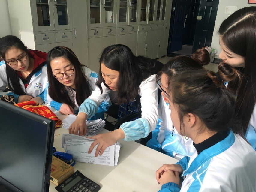 志愿者们主要任务是协助财务处的老师粘贴凭证。财务处的孙红霞老师就粘贴凭证的时间范围和要求向她们进行了详细的讲解,对每个人的分工进行具体说明。志愿者们首先认真仔细地按类别和时间排放好记账凭证,依据会计专业所学粘贴凭证的操作规范和工作流程,坚持从下往上,从右到左,奇偶平衡,内多于外的原则,把记账票据整整齐齐地粘贴到原始凭证上面,最后整齐地装入收纳箱内。粘贴凭证是一项细致、繁琐、规范性与美观性很高的会计工作环节,学生在粘贴过程中虽然很辛苦,但仍然坚持做到细致、沉稳,看到了一排排贴得整洁、美观、平整、便于查阅的会计凭证,她们的脸上露出了喜悦的笑容,也得到了财务处老师们的肯定和赞许。