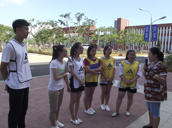 活动于13:30正式拉开帷幕。此次活动共有25名2014级学生参加。内容共分为五项,通过后四项淘汰赛,决出优胜队。第一项、桃园结义。在博学楼内藏有十五张身份卡,让队员们在寻找中找到自己的队伍;第二项、掠影校园。根据所抽到的号码球,依次拍摄相对应的两张图片,照片通过审核即为完成任务;第三项、一心两用。根据抽取任务卡要求寻找符合要求的同学或老师一起完成跳大绳读出绕口令的任务;第四项、我形我塑。根据任务卡上所示地点,绘制该地点的平面图;第五项、大海捞针。5米的距离,按顺序进行翻拍,完成指定任务要求。