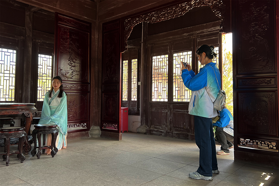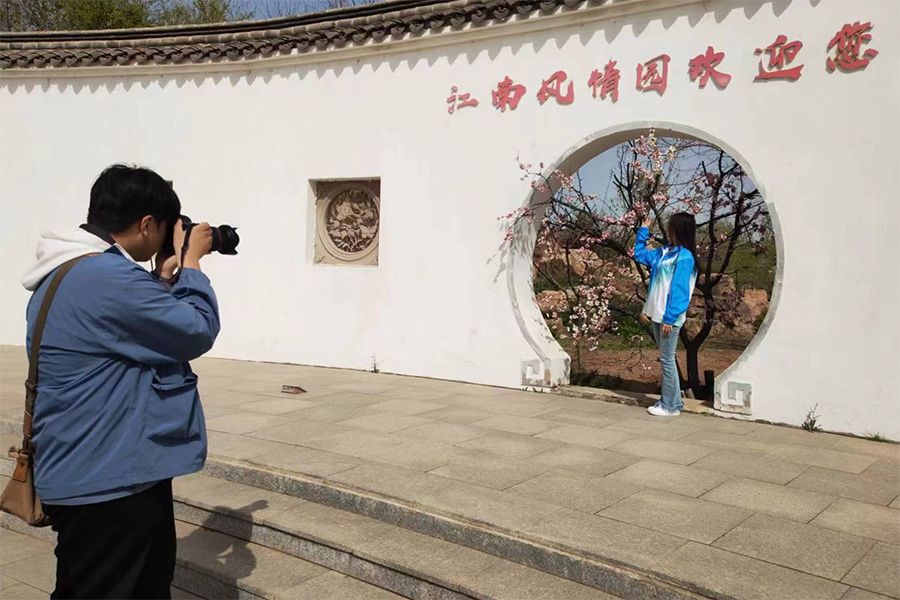 4月21日下午,由国家AAA级旅游景区、国家文化产业示范基地江南风情园景区大力支持的“江南风情园杯”财经学院第一届短视频营销设计大赛开幕,网络营销与直播电商专业教研室主任孙玉苹、辅导员张忠及教师马祥山、王君婷共同带领参赛学生到盘锦江南风情园景区开展短视频素材拍摄实践活动,学生在园区工作人员的指引下对江南风情园的建筑风格与设计理念有了深刻了解。