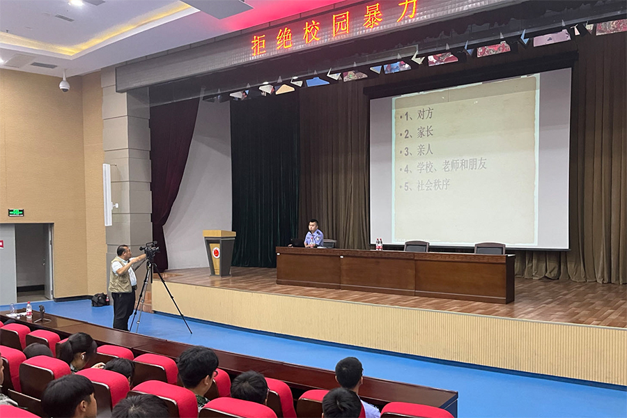 李警官结合近年来发生在学生身边的真实案例,就“预防暴力”“发生暴力”“暴力后期”三个阶段分析了校园暴力案件的成因,向大家讲解了应对校园暴力的有效措施,施暴者可能构成哪些犯罪、触犯刑法的后果,以此警示同学们正确认识校园暴力的危害,既不能做校园施暴者,也不能成为校园暴力的受害者,更不能冷眼旁观,要通过积极有效的方法避免校园暴力的发生。