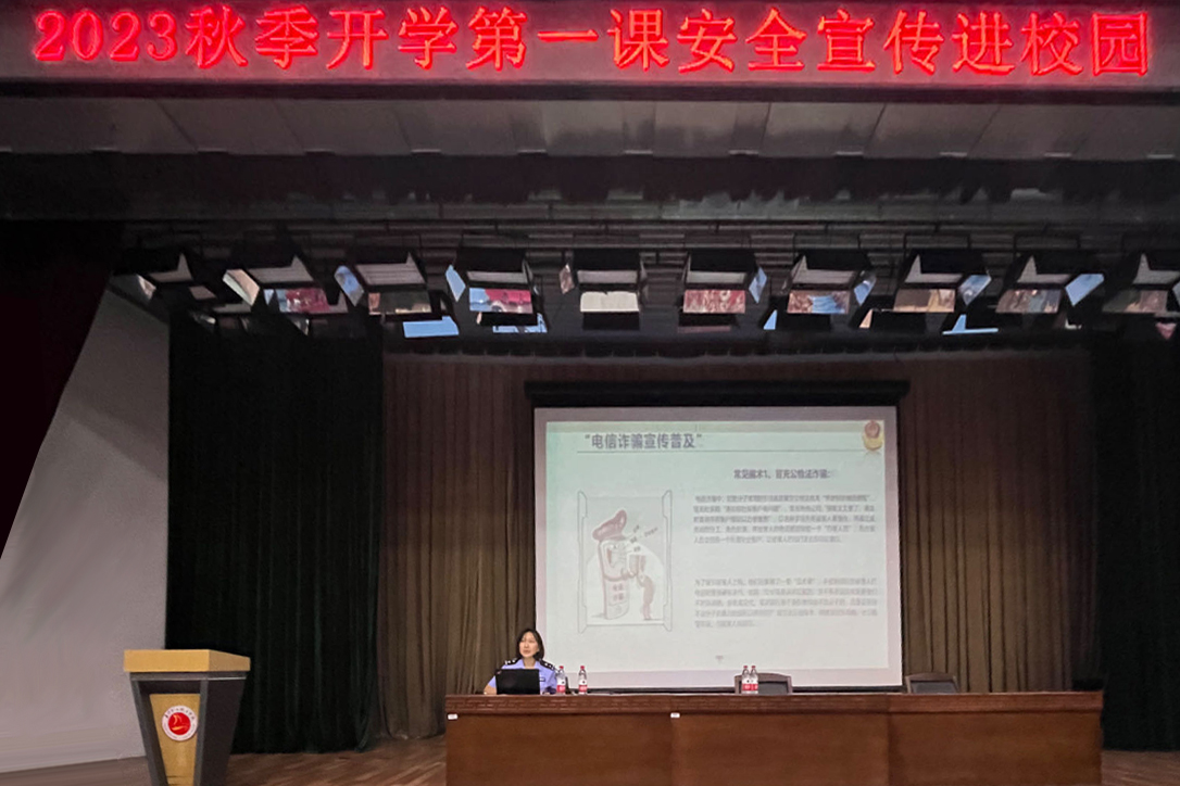 为进一步增强学生安全防范意识,提高学生安全防范能力,切实维护校园安全稳定,9月8日晚,学生工作处、安全保卫处联合大洼区二界沟派出所,面向2023级新生开展安全教育宣讲。