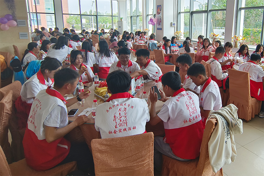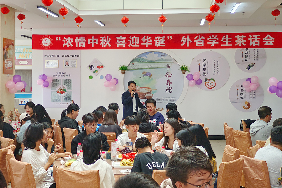 返校后,在学生工作处的精心筹备下,参加活动的全体师生于伟德官网教工食堂举办了“浓情中秋 喜迎华诞”外省学生茶话会。餐桌上满盘的瓜果和精美的月饼,烘托出祥和的节日气氛,让每名省外留校学生在校园里体会到家的温馨与幸福。师生们一边分享节日美食,一边用歌声和话语表达自己的幸福心情,分享本次社会实践活动的收获与感受。