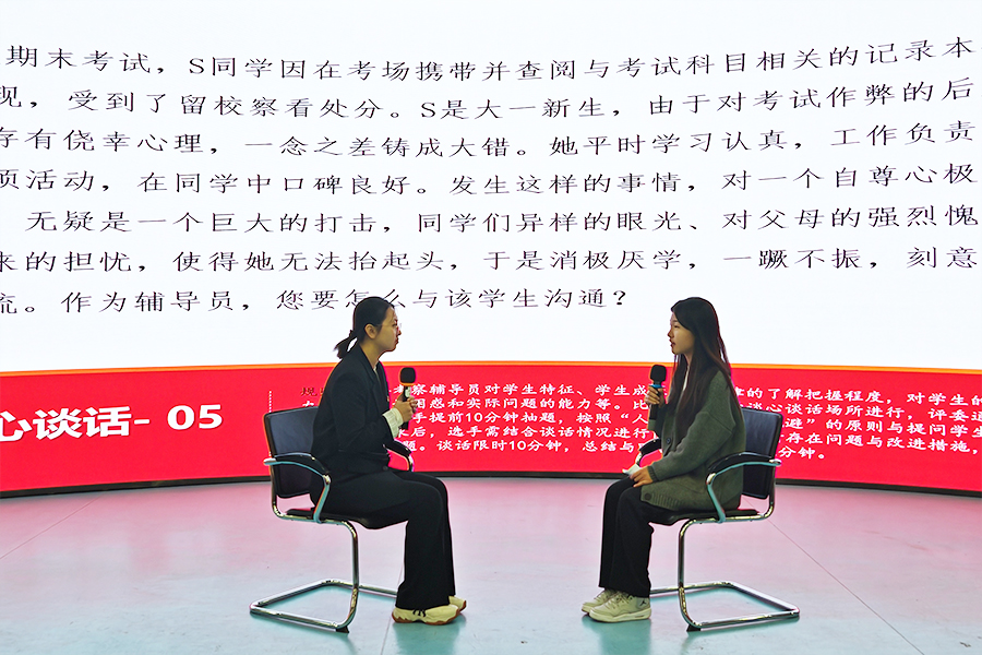 本次辅导员素质能力大赛共有初赛(集体备赛)、复赛(基础知识测试)和决赛(案例分析、谈心谈话)三个环节,将辅导员理论功底和实践能力提升紧密结合,全面考查和展示辅导员队伍的理论水平、职业能力和专业素养。