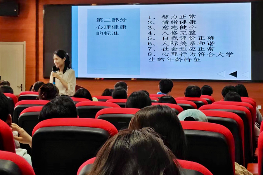 本次培训分为两大部分。首先,思政教研部心理教研室主任高玲围绕心理委员的工作职责、角色、工作原则、如何自助和助人等内容做了辅导讲座。随后,心理健康教师刘方方从心理问题和危机干预两个方面,重点向心理委员们讲授心理健康的标准、大学生常见心理问题及应对策略、对高危人群的识别及干预等内容。