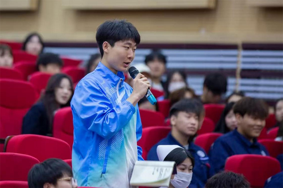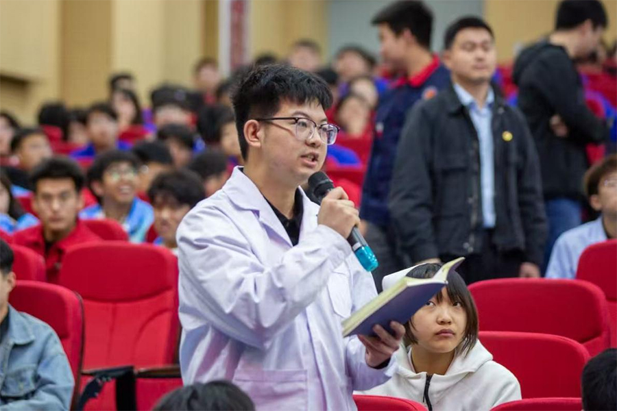 宣讲结束后,互动提问环节将现场气氛推向高潮。同学们围绕“技能提升路径”“世赛备赛经验”“五四精神与职业理想”等话题,踊跃提问。对于同学们的问题,姜昊老师耐心解答,结合自己的亲身实践经历分享了许多实用的经验,让同学们收获颇丰。