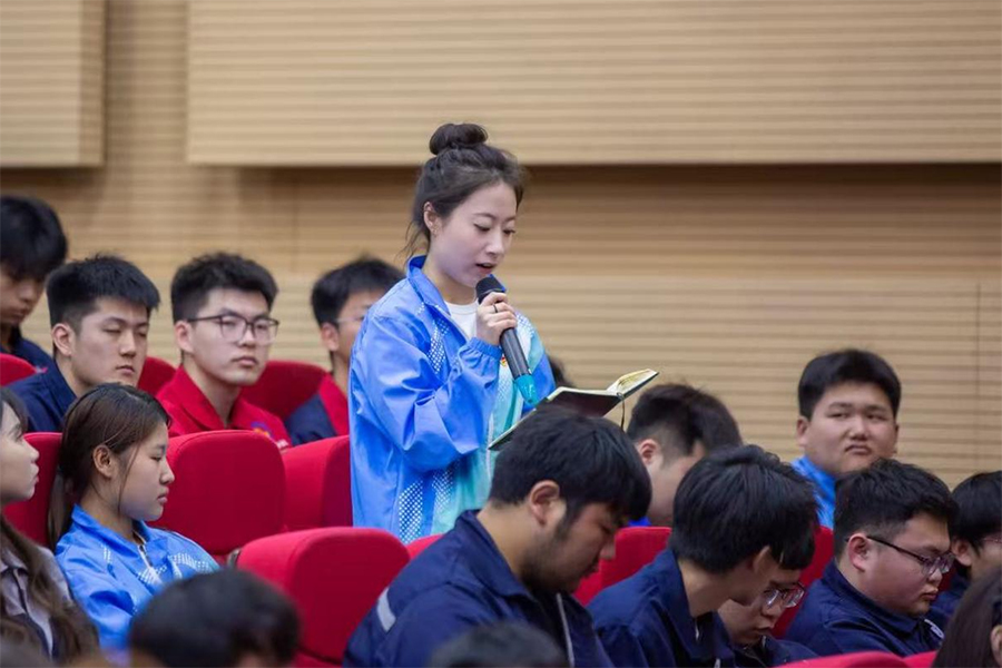 在主题宣讲中,姜昊老师分享了自己的成长历程与奋斗故事,以“青春逐梦——匠心筑梦——载誉而归——砥砺前行”为脉络,讲述自己在技能学习道路上的点点滴滴,从默默努力到一鸣惊人,姜昊老师的每一句话都饱含着对技能的热爱与执着,用实际行动诠释了“干一行、爱一行、精一行”的工匠品格。