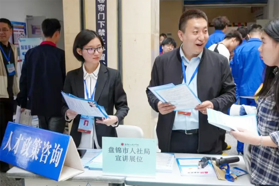2025专场招聘会在13:00正式拉开帷幕。本次招聘会受到了社会的广泛关注,盘锦市人社局、大连长兴岛经济区管委会及行业协会分别组织所属企业参加,涵盖了石油、化工、机电、信息、教育、医疗、建筑、财经等多个领域。盘锦人瑞服务外包有限公司、盘锦天工精铸有限公司等100余家用人单位参加招聘会,提供招聘岗位800余个。全校有1500余名学生参加招聘会,有300余名学生企业达成了初步就业意向,700多名学生与企业签订了实习协议。招聘会现场,还精心设置盘锦人才政策咨询、AI简历指导、AI面试等一站式服务专区,为毕业生提供精准就业指导。