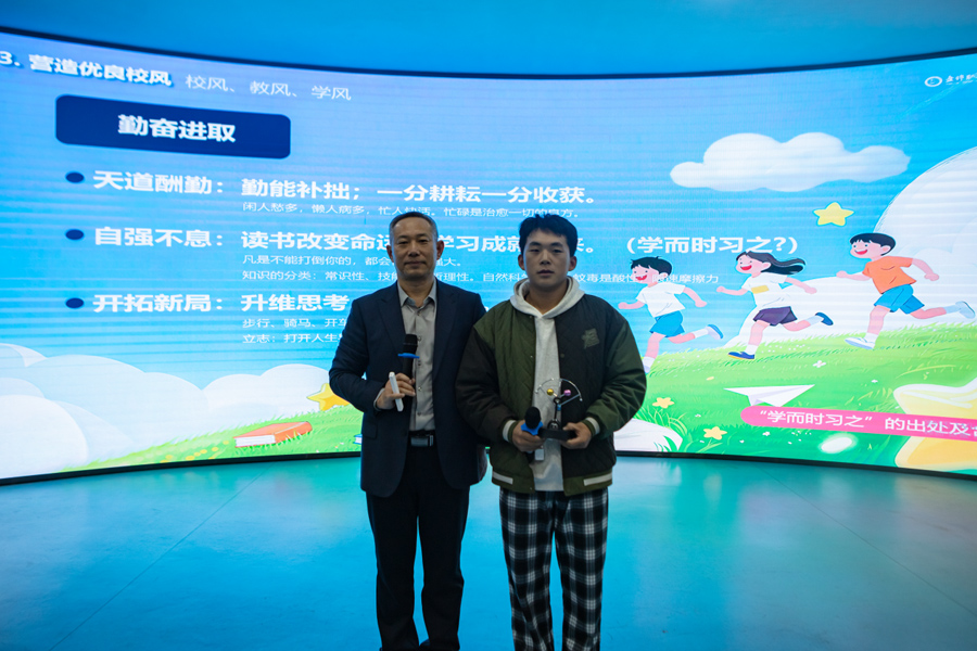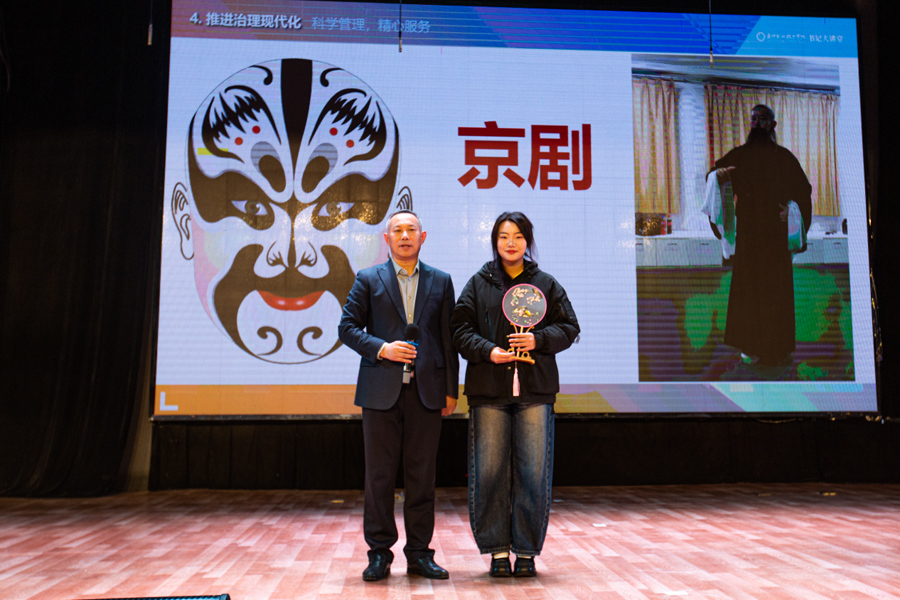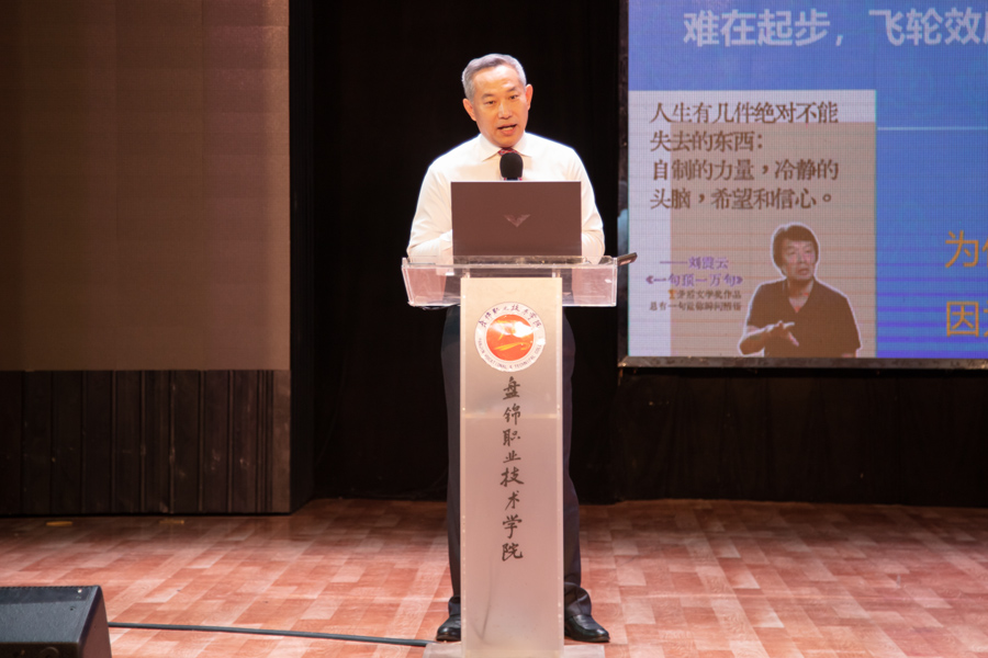 王首中书记以深厚情怀与育人智慧,在新生初入大学之际,送上了一堂堂有温度、有深度、有高度的大思政课,引导学生珍惜青春、不负韶华,以实际行动书写无悔大学时光。专题讲座围绕站在新起点的思考、建设百年校园、营造良好校风、推行现代化治理、倾力全方位成长等五个方面展开。讲座现场气氛热烈,他以“如果你为错过了太阳而懊悔,那么请珍惜当下的月亮”等富有哲理的话语开场,鼓励新生树立积极心态,摒弃迷茫与焦虑,在心中“种下太阳”,从容扎根、努力生长。通过营造书香校园、构建阳光校园、打造智慧校园、创建平安校园、塑造美丽校园等路径探索建设百年校园,实现师生齐努力、校园更美好的愿景目标。围绕如何营造优良校风,他结合自身经历与人生体会,从严谨务实、勤奋进取、文明健康、遵纪守法、公平正义、善良诚信、风清气正、开放开明等方面,生动阐释“校风就像气候,春风送暖,百花盛开”,勉励师生“用生命影响生命”,共同营造温暖向上、富有幸福感的校园氛围。在推进治理现代化方面,详细介绍“三个一切”——“一切为了学生的健康成长、一切为了教职员工的幸福工作、一切为了盘锦职院的高质量发展”,并分享了“关爱行动”“晚自习革命”“百团大战”等一系列创新举措,号召全校教师用教育家精神办教育,用系统思维谋划工作、用法治思维进行治理、用管理思维取得效能、用人本思维带好队伍、用修行思维抓好作风、用教育家思维不断改善、遵循教育的本质和规律,充分体现学校以生为本、科学管理、精心服务的坚定决心。如何倾力学生全方位成长方面,他结合伟德官网“涵养优品质、习得强技能、养成好习惯、保持健身心”的培养目标,深刻诠释“五育并举”的育人理念,强调“知识是基础,技能是力量,良知是方向”,引导学生注重品格锤炼与全面发展。讲座中穿插有奖问答、才艺展示等互动环节,学生的热情参与将现场气氛推向一个又一个的高潮。他本人更是亲自展示京剧片段而赢得阵阵掌声,让在场师生深切感受到中华优秀传统文化的魅力。