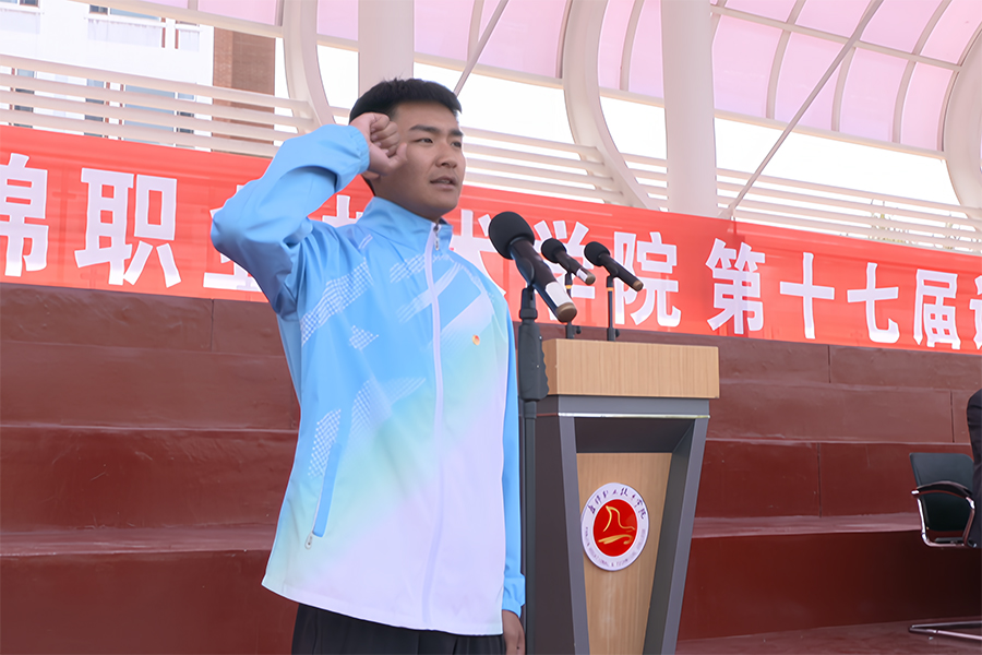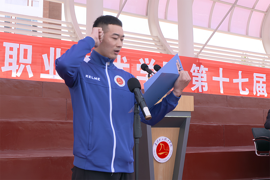 体育工作部教师赵磊作为裁判员代表、机电工程学院学生万金池作为运动员代表进行宣誓。