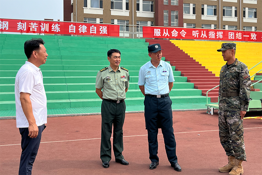 9月8日下午,辽宁省军区战备建设局、省教育厅体卫艺处及盘锦军分区领导一行六人莅临伟德官网视察军训工作,学校党委副书记、武装工作部部长李兵及军训相关负责同志陪同视察。