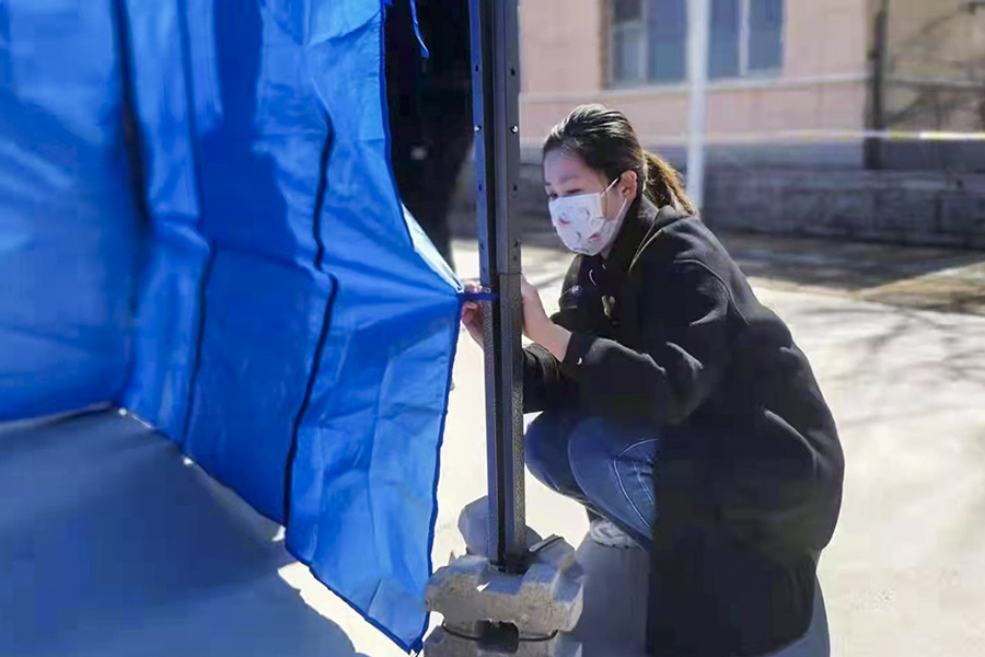 核酸检测现场,工作队成员不停穿梭在排队等待核酸检测人群中,耐心解答村民疑问,“我没带身份证怎么办?健康码在哪找?孩子没有健康码怎么办?”在空旷的广场上,阳光直射屏幕根本看不清手机,有时变换好几个角度都不一定能扫上,只能靠工作队成员手动输入信息才能认证识别。从早上八点忙到下午四点,大家依旧用铿锵有力的嗓音提醒村民提前出示辽事通健康码、佩戴好口罩、保持一米间隔,确保全员核酸检测扩面筛查安全有序进行。