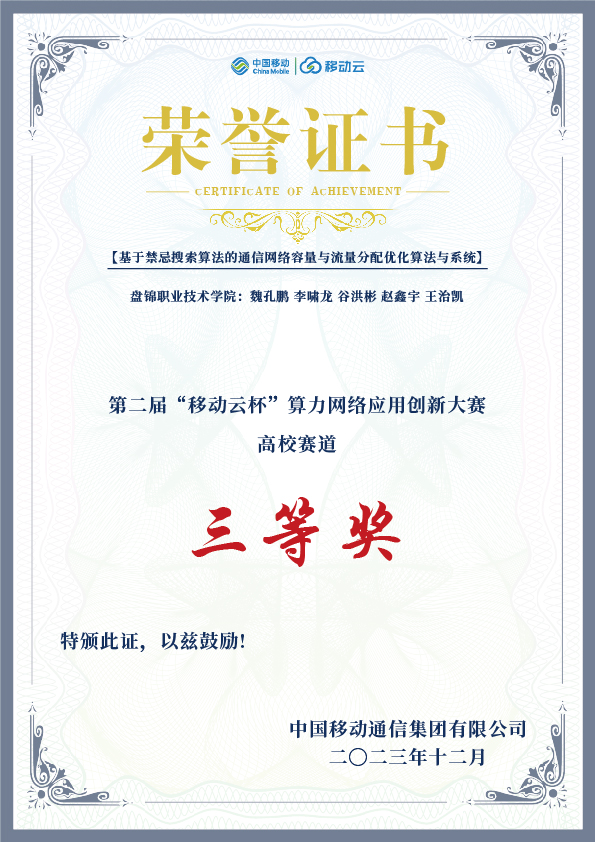2023年11月29日至12月1日,移动云开发者技术论坛暨第二届“移动云杯”算力网络应用创新大赛总决赛在苏州完美落幕。伟德官网信息学院学子赵鑫宇、王治凯两位同学在魏孔鹏、谷洪彬、李啸龙指导老师的带领下,经过初审、初赛、复赛和决赛的激烈角逐,荣获高校赛道三等奖。