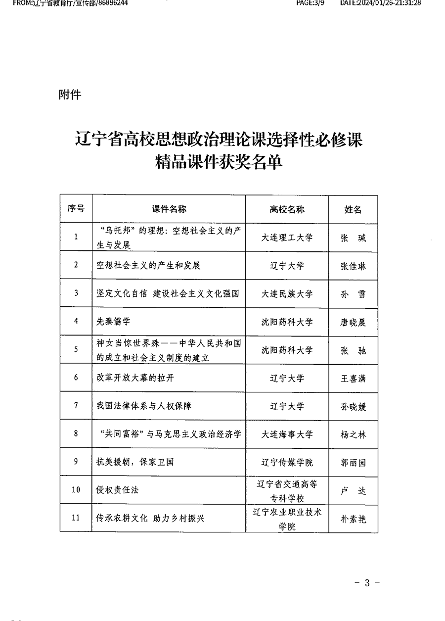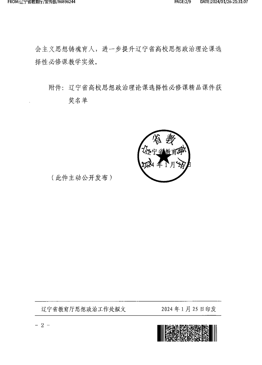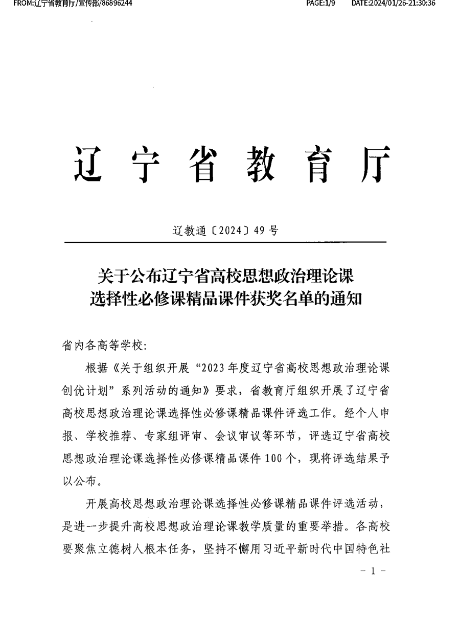 近日,辽宁省教育厅公布辽宁省高校思想政治理论课选择性必修课精品课件评选结果,伟德官网共有两个作品获奖。