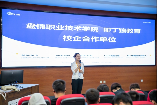 沈阳叩丁狼科技有限公司的代表详细介绍了公司主要业务领域、技术创新成果以及未来的发展规划。同时,还分享了行业内的职业发展路径,包括技术人员的成长轨迹、晋升途径等。此外,公司负责人还就学生们关心的就业问题进行了解答,提供了实习机会和职业发展建议。