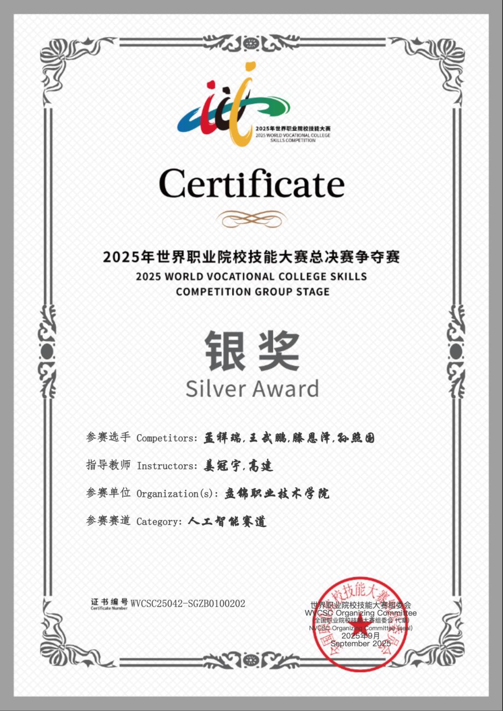 2025年世界职业院校技能大赛总决赛争夺赛 银奖