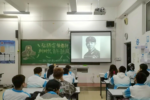 在团日活动上,同学们观看了《雷锋》、《雷锋在1959》等红色电影,通过PPT讲解、诗朗诵、演讲等多种形式开展活动,讲述雷锋故事和卫国戍边英雄事迹,歌颂雷锋精神的伟大力量和时代意义。