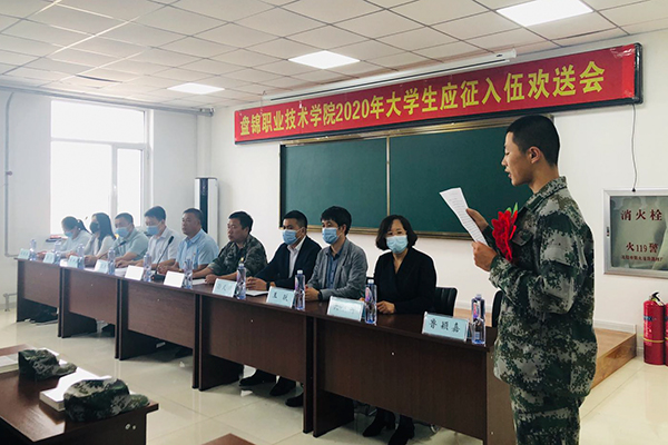 为欢送学院2020年光荣应征入伍的新兵同学奔赴军营、献身国防,9月9日下午,学院在大洼区人民武装部新兵集训地隆重举行了2020年大学生应征入伍欢送会。学生工作处处长、武装工作部副部长邓红伟,大洼区人民武装部政委刘宏宇,学院相关分院系党总支副书记,以及25名即将应征入伍的新兵共同见证了这一珍贵时刻。欢送会由武装工作部军事理论教研室主任王俊杰主持。