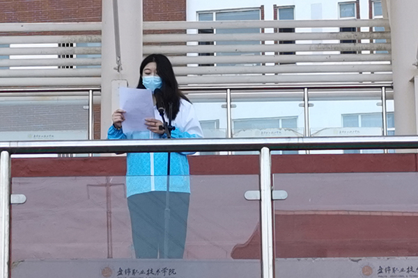 升旗仪式上,学生代表、建筑工程分院的龚芮同学进行了国旗下的演讲,她结合自己在疫情期间的所见所思所行所感,深深表达了自己身为中国人的骄傲与自豪,以及对学院和师友的感激之情,号召同学们向疫情期间涌现出的优秀榜样学习,同时也呼吁大家在校期间做好个人防护,严格遵守学校各项规定,在健康、稳定、安全的校园里勤奋学习,将来在国家需要的时候挺身而出,贡献自己的青春力量。