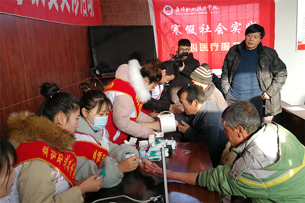 为深入学习宣传贯彻党的十九大精神以及习近平总书记系列重要讲话精神,引领广大青年学生按照习近平总书记关于“勤学、修德、明辨、笃实”的“八字真经”要求,树立和践行社会主义核心价值观,响应团中央、团省委关于“三下乡”社会实践活动的精神,组织引导广大青年学生将激昂青春梦紧紧融入实现中国梦的伟大实践中,在学院党委副书记李兵的亲临指导下,结合学院团委统一安排,伟德bv国际体育医疗护理分院组建了爱心医疗志愿服务团,并于2018年1月20日至22日赶赴辽宁省凌源市万元店镇康杖子村及周边地区创造性开展了为期三天的一系列丰富多彩的 “三下乡”社会实践活动。学院团委副书记蔡志远,医疗护理分院党支部书记王艳华、副书记陈平海,学生处军事教研室主任王俊杰,团委实践教师段野,医疗护理分院辅导员老师高德朋、刘方方,专任教师董莲诗、张果及12名优秀学生参加了此次实践活动。