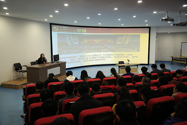 为了更好学习十九大、宣传十九大、贯彻十九大,学院党委理论学习中心组根据学院党委制定的《中共伟德bv国际体育委员会关于认真学习宣传贯彻党的十九大精神的通知》的要求,于11月24日召开了学习十九大精神之学习新党章的中心组扩大学习。并请到了市委党校王娟教授给全体中心组成员与学院全体党员上了一堂题为“深入学习践行《中国共产党章程》——解读十九大党章”的专题讲座。王娟教授深入浅出的讲解,让与会全体同志都受益匪浅。
