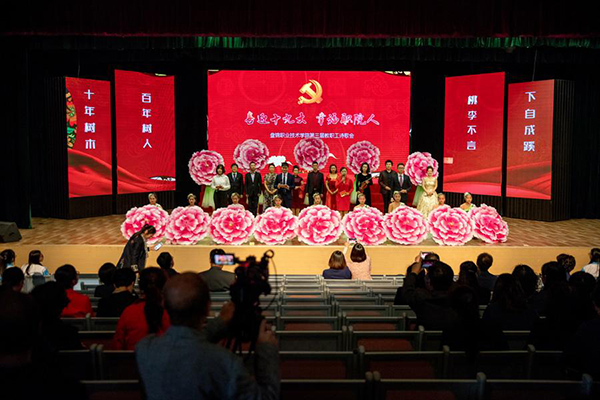 10月13日下午伟德bv国际体育工会在学院文化中心举办了“喜迎十九大 幸福职院人”暨第三届教职工诗歌朗诵会活动,学院领导班子成员,全体教职工以及600余名学生代表共同观看了本次演出。