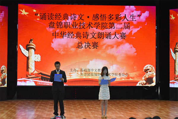5月23日下午13:00,由学院基础部、团委共同举办的“诵读经典诗文感悟多彩人生”伟德bv国际体育第二届中华经典诗文朗诵比赛总决赛在文化中心三楼演艺大厅拉开帷幕。学院党委副书记李兵、学院副院长李辉、学院副院长李凯、学生处处长邓红伟、团委副书记蔡志远、三部党总支书记王泽喜、基础部主任李朝阳及各分院系部分师生观看了比赛。