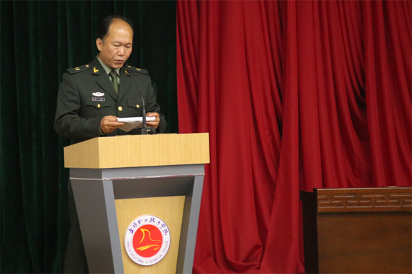 大洼区人武部姜海军部长在动员会上讲话。姜部长对学院大学生征兵工作取得的成绩给予了充分肯定,对学院应征入伍大学生的综合素质给予高度的好评,同时鼓励学院大学生积极应征入伍建功立业。