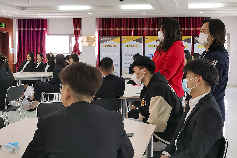 实训第一天,孙彦老师和赵晶老师首先向同学们介绍了实训计划,并完成了第一项实训任务,即学生分组查询洲际酒店集团、希尔顿酒店集团等国际前十名酒店集团的相关知识,包括对酒店部门及岗位,岗位职责及晋升规律的认知等,并以小组的形式进行汇报。学生通过对国际酒店连锁集团的认知,了解酒店行业基本情况,进而明确自己进入酒店工作后的个人规划。