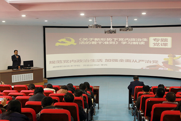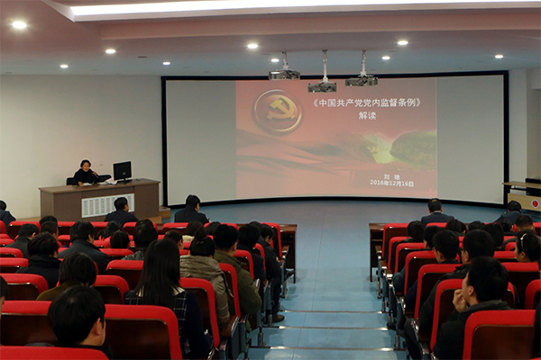 为了更好的学习贯彻党的十八届六中全会精神,根据学院党委的统一安排,学院党委副书记李兵同志于12月23日下午1点30分在学院博远楼103为学院全体党员同志专题解读了《新形势下党内政...
