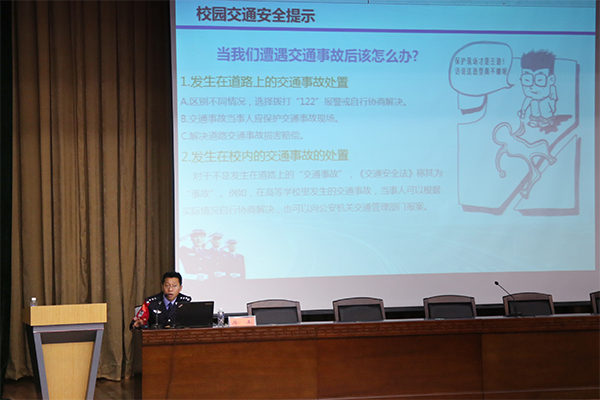 3月7日下午两点,在学院图书馆一楼报告厅,安全保卫处特邀盘锦市辽东湾新区交警大队周正教导员为学院师生及司机们做交通安全知识讲座。 此次交通安全知识讲座内容详实,多种类案件及...